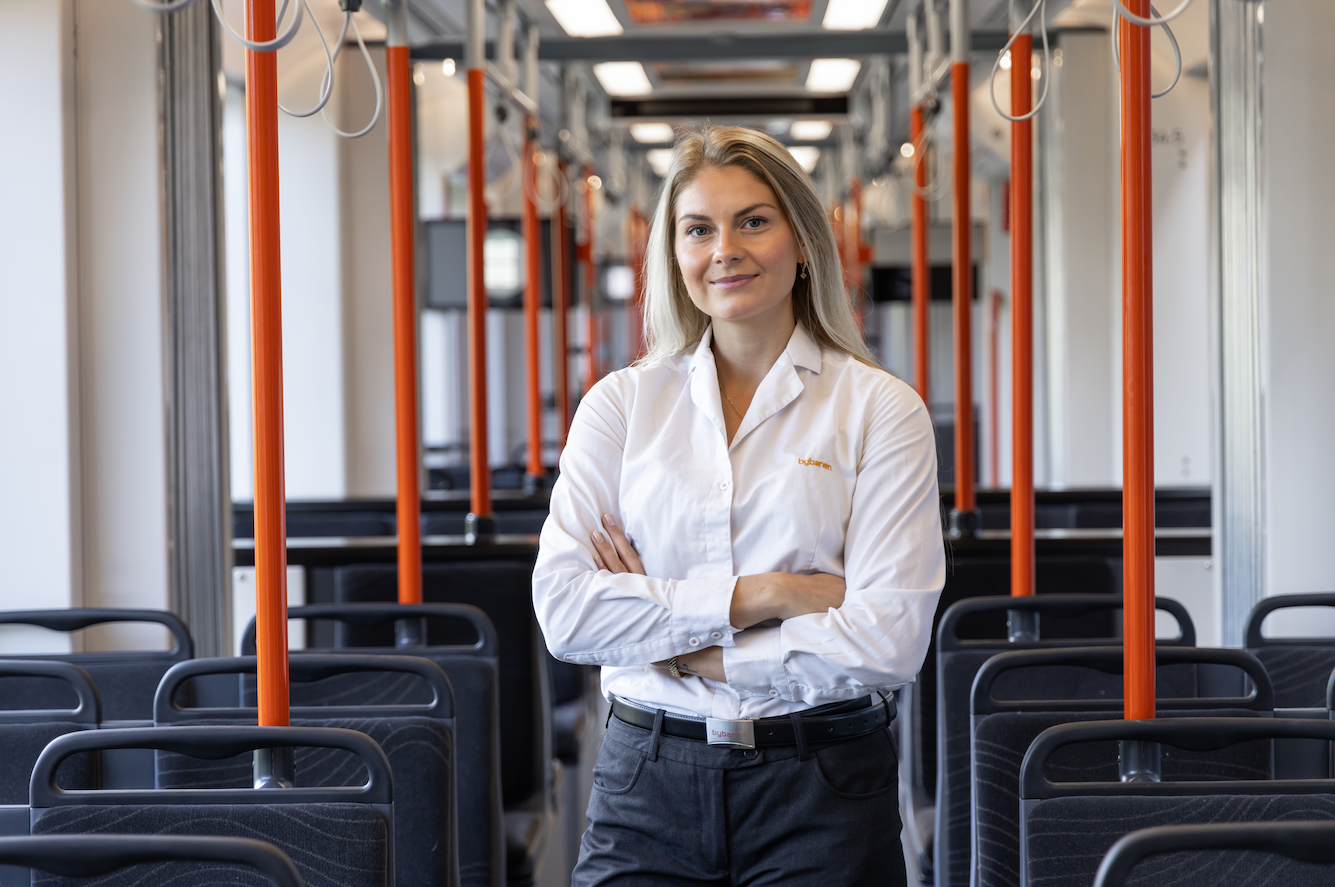 - Det er kult å ha kontroll på et kjøretøy som med passasjerer veier rundt 70 tonn. Jobben som vognfører innebærer et stort og viktig ansvar for byen og alle menneskene som skal komme seg til og fra 💪