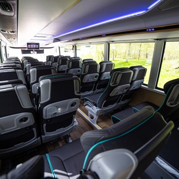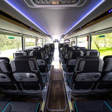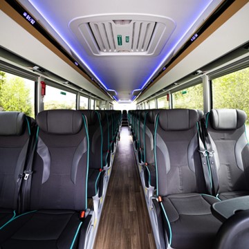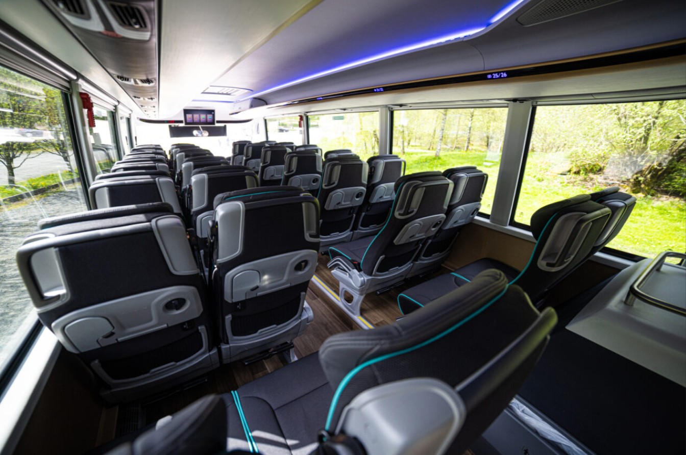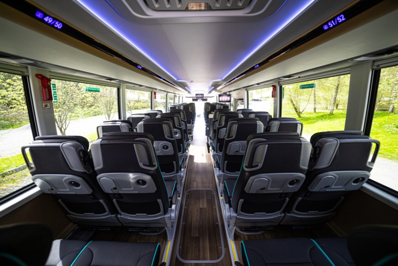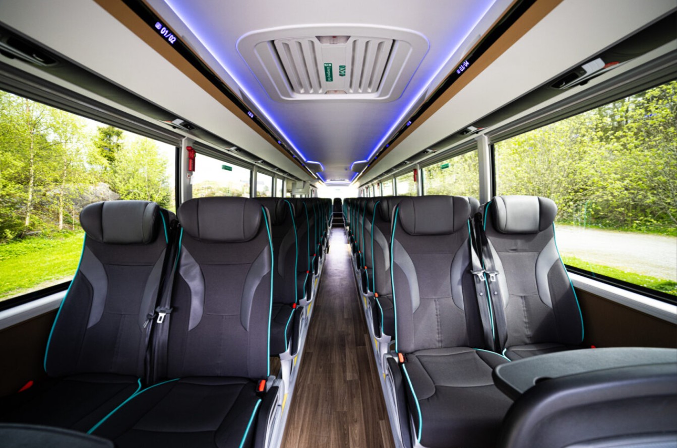 Bussene har enten 49 og 51 seter eller 60 og 61 seter, samt bagasjeplass.