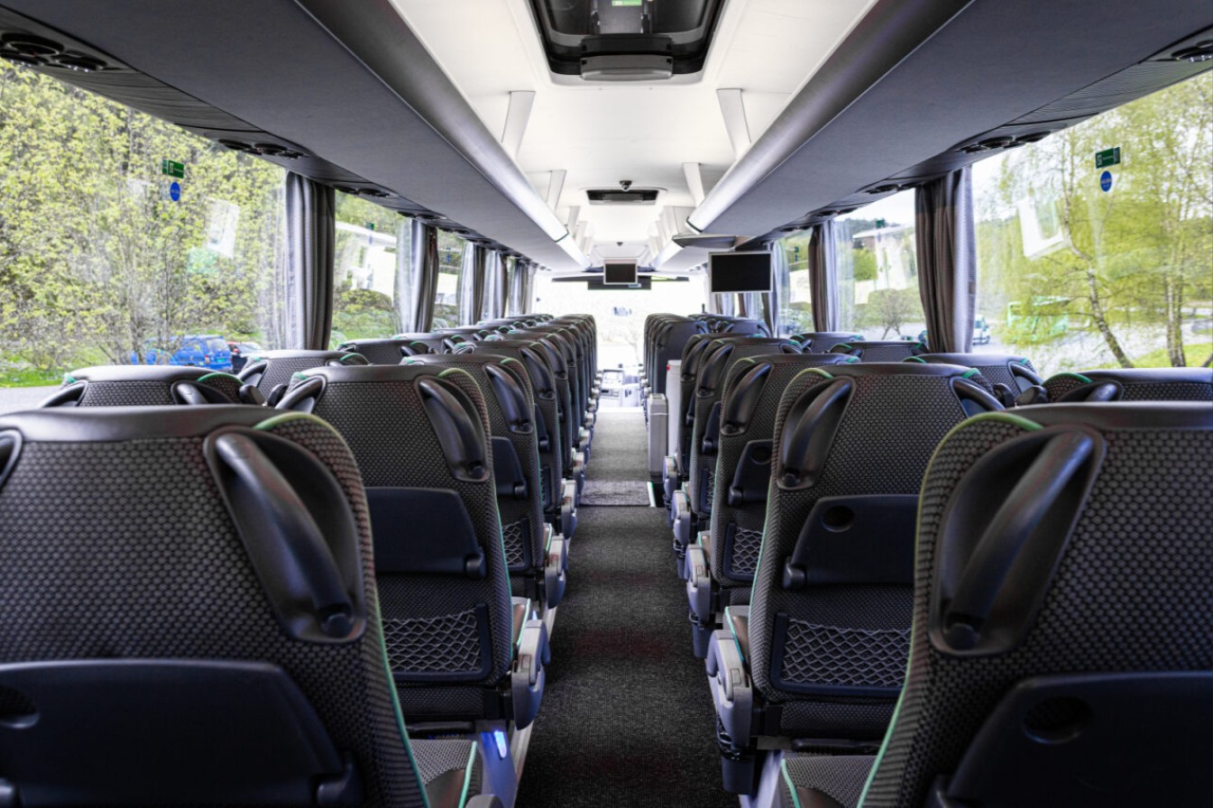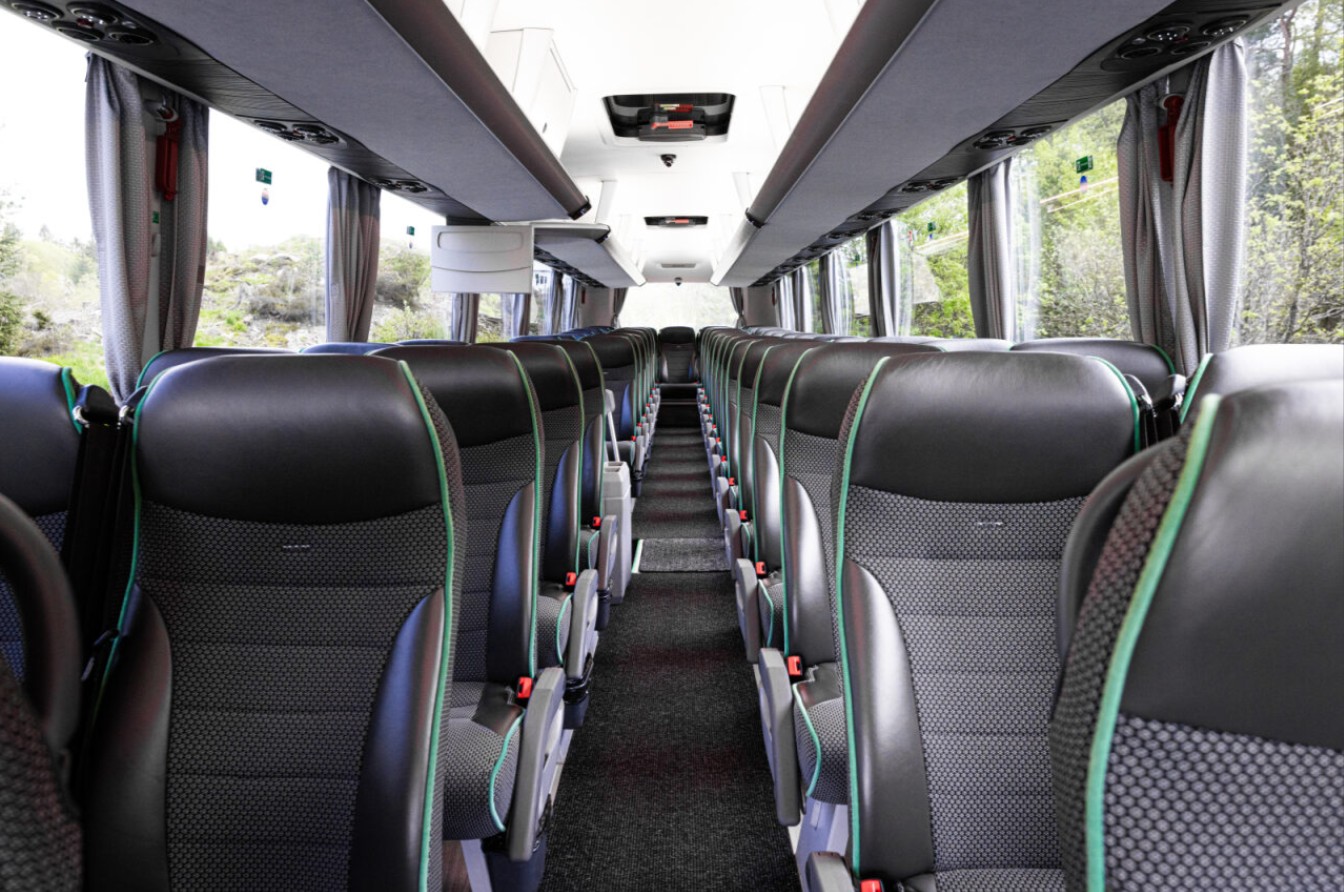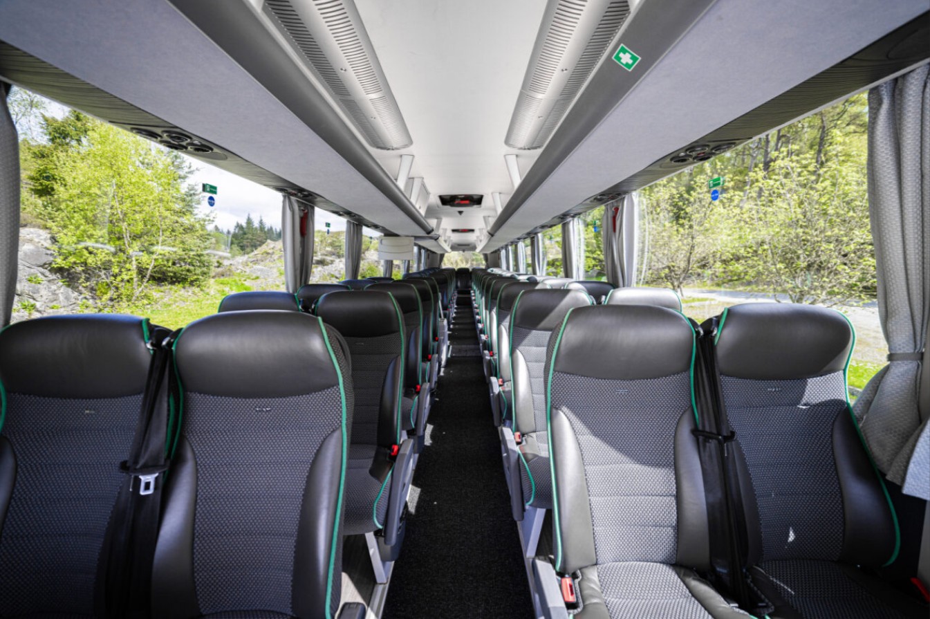 Våre moderne og miljøvennlige turbusser holder høy komfort. En turbuss er i dag et svært sikkert transportmiddel med gode fasiliteter. Alle turbussene våre har: